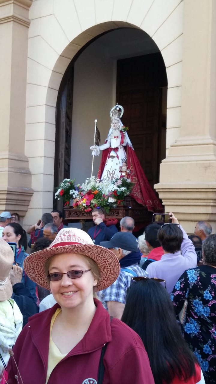 The Virgen made a circuit of the whole church, accompanied by the bands and the bellringers, before making a triumphal entry. Not nearly all the pilgrims would fit into the church for the solemn mass, and it seemed as though most didn't try.