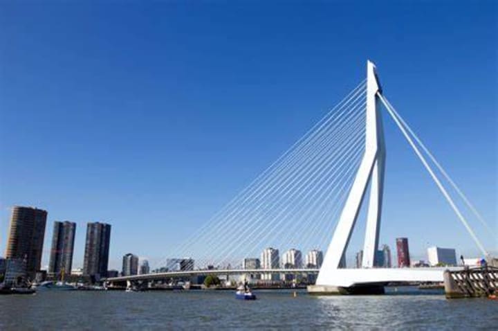 One of the icons of Rotterdam is the Erasmus Bridge. This is one of Holland’s most famous bridges and was officially opened in 1996 by Queen Beatrix. It is an important connection between the Northern and Southern parts of Rotterdam. This amazing bridge was created by Ben van Berkel. It is 800 meters long and has a 139 meter high pylon fastened by 32 stays. The bridge is also known as “The Swan”. The Erasmus Bridge has been part of many different events like Hollywood movies, Red Bull Air Races, dance events and the start of the 2010 Tour de France.