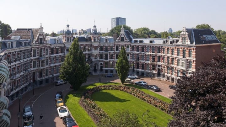 Opposite the Museum park is the Queen Emma Square built between 1888 and 1891. It was designed by JC van Wiljk and has 15 mansions in the neo-Renaissance style. The backs of the buildings overlook the Schoonoord Park and the fronts overlook the land of Hoboken. The elite of the Rotterdam business world live here. On the square is a decorative vase designed by Berlage in 1890. This square is a national monument and has the status of a conservation area.