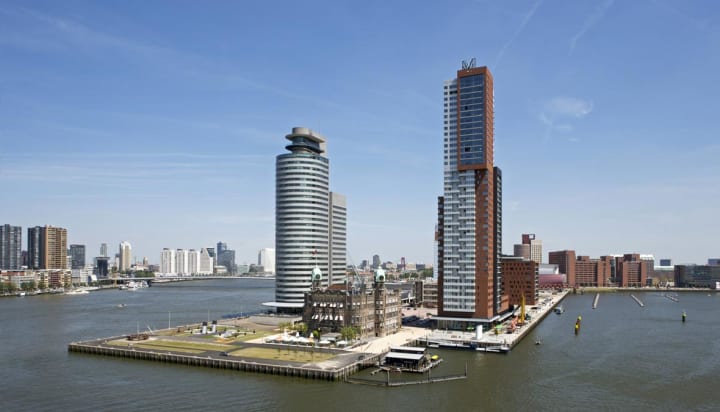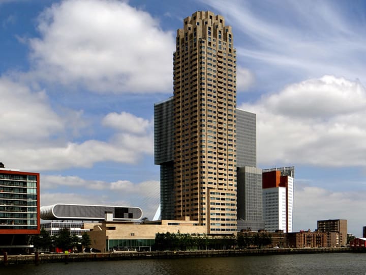 Rotterdam has some impressive skyscrapers like the 43-storey residential skyscraper Montevideo on the Nieuwe Maas River. It is well-known for the large letter “M” on top making the tower’s height at 152.3m. It was designed by the Mecanoo architecture firm and has 192 apartment units and office and retail space. The tower was named after the capital of Uruguay.