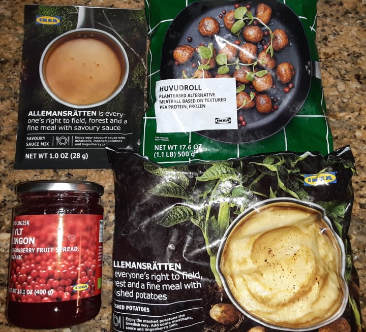 Meal: I did a few searched online to find out what popular Swedish meals existed that I could create as well as modify to a vegetarian version. It turns out the IKEA now has two different versions of vegetarian meatballs, so I tried their version of a popular dish, consisting of: