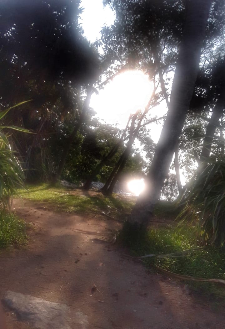 So, after a lazy stroll along the beach I walked up to the land jutting out from the beach filled with palm trees. The ground was covered with white sand, a few patches of green grass and bushes and covered with dry leaves. I deliberately walked on the dry leaves, the scrunching sound was quite satisfying. Every second a wave crashed against its wall. Huge cargo ships chained to one another in a row at a distant. The horizon behind those ships were bright orange, blending in with the clear blue sky. The view was breathtaking.
