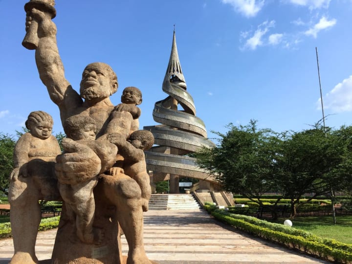 The Reunification Monument stands out as one of the most significant representations of Cameroon’s past, present and future. It is the creative art work of Cameroonian artist Gedeon Mpando completed in 1974. The monument is a physical representation of the reunification between French and British Cameroon. The monument is further enhanced by the erstwhile staircase, the banquet hall in the basement and the impressive garden.