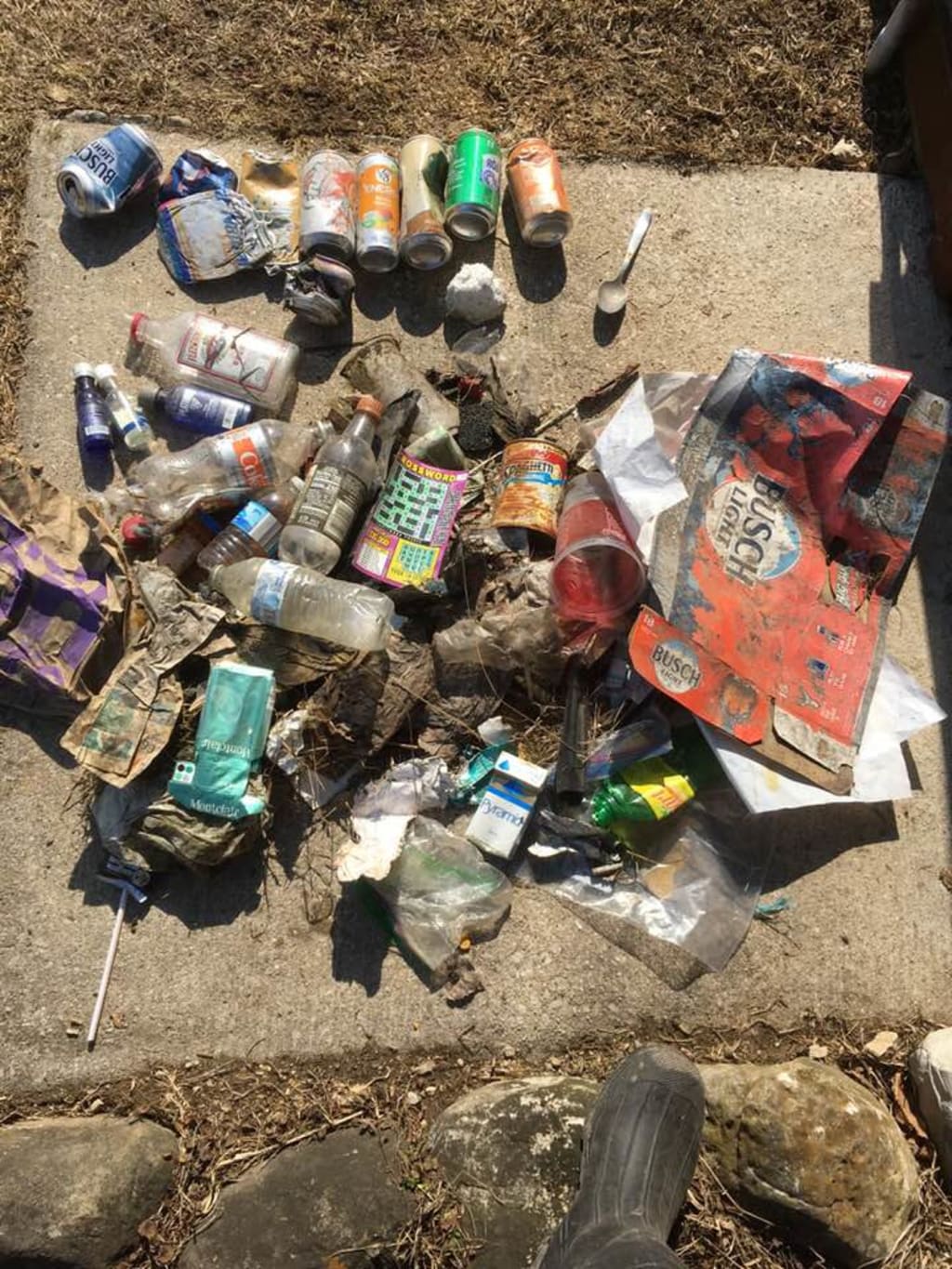 I don’t know about other places but we seem to have a drinking and driving problem around here. Beer cans. Lots of beer cans. All brands. And little vodka bottles. Many, many little vodka bottles. Whiskey too but mostly vodka bottles. I understand that People wouldn’t want empty beer cans and booze bottles in their cars, especially if they’ve been drinking them while they’re driving. (Don’t they know how dangerous that is?) Why do they have to throw them in my ditch?