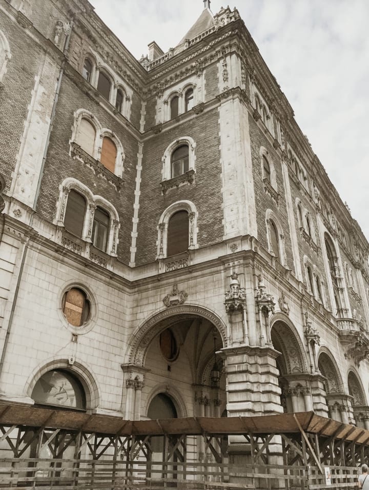 The grand mosaic floors are cracked, the ancient fountain is dry, and the tall intricately decorated windows are boarded up to keep out the sun. There is a long grand spiral staircase which leads to the upper floors, but because I have some luggage, I decide to opt for the lift instead. The lift is tiny and looks like something from the 1800s. At first, I can’t figure out how to even open it until a little old man who only speaks Hungarian comes into the building, chuckles, and opens it for me, explaining the directions in wonderful Hungarian detail (even though I understand nothing) so I just smile and nod politely.