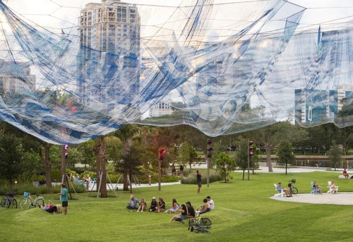 All throughout the pier area are public artworks like the Bending Arc by Janet Echelman.