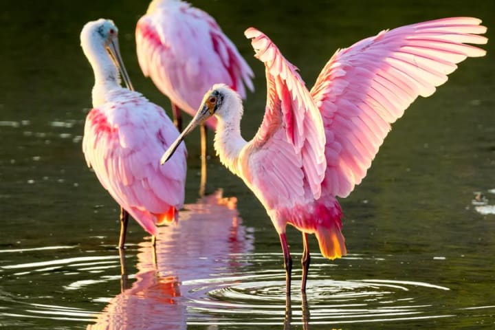 You can see birds like herons, roseate spoonbills, great horned owls, anhingas, and common moorhens feed and nest in the salt marsh.