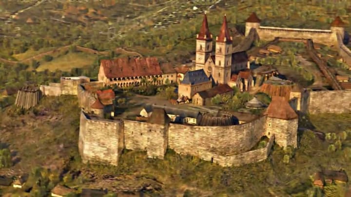 Sumeg Castle is a medieval fortress near the town of Sumeg. The castle was built by King Bela IV in the 13th century and later given to the Archdiocese of Veszprem. It sits on a hill north of Lake Balaton, the largest lake in Central Europe. Sumeg Castle has two towers at each end and a walled pathway leading to the main courtyard. There is also a chapel, a museum, a well, and a dungeon. It offers historical equestrian games, knight tournaments, medieval festivals, and concerts. The castle also has a tavern where guests can enjoy traditional Hungarian dishes and drinks.