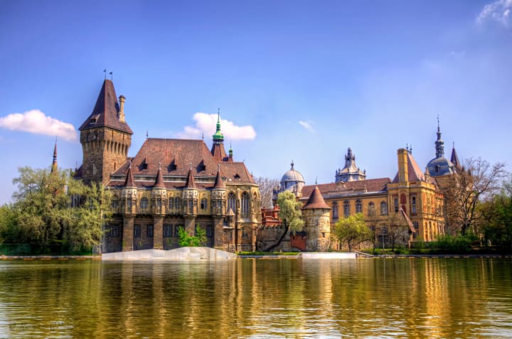 Vajdahunyard Castle is located in the City Park of Budapest, Hungary. It was built in 1886 for the Millennial Exhibition, celebrating the 1,000th anniversary of the Hungarian conquest of the Carpathian Basin. The castle is a mix of Romanesque, Gothic, Renaissance, and Baroque styles.