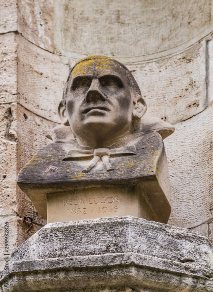 A bust of Bela Lugosi, a Hungarian-American actor popular for portraying Count Dracula