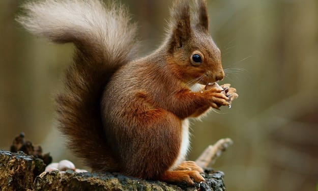 It was a cold snowy morning atop of the glazed hill where I awakened. The shivers went down my spine, as I stretched out my arms and legs as much as my little body could. The frost around my home was glistening and dripping, as if it were melting by the heat of the sun. A ray of sunshine came up over the hill and shun through my home onto my face. I was delighted, and I quickly let out a long yawn as the warmth came over my body once again. I then turned to my left then my right, trying to decide which way I desired to scramble to my feet. I felt hungry, a slight grumbling came from my stomach. I began to search about my home to find something tasty to eat. Sadly nothing edible was found. Determined to find some food, I had made up my mind to go out. It was a decision not made lightly, but I knew that I must in order to survive the rest of the winter. It was still chilly but the sun helped even out the feeling of the cold breeze. I went out to the edge of the hill, it was now snowing. A few flakes of white floated down towards the ground and landed on and around me. I slowly followed some footprints already made in the snow down the now icy hill. Alert and trying to be aware of my surrounding neighbors, I started to slide a little. I quickly caught my balance. I was feeling very clever that I didn't fall over. I then heard a loud screech a crossed the sky. I looked up, trying not to be blinded by the sun. Scarcely being able to see through the flakes of snow, that had landed on my eyelashes. I had seen a barn owl, it swooped towards my home atop of the hill. It landed on a perch right near my front door. Driven by fear I froze, frightened by the sound. I hoped I was not seen, I did not want to disturb it's hunting. For it was known they hunt during the day as well as night. Still frozen not wanting to make any sound I stayed where I was. Thinking to myself I would have to be careful to remain unseen. The barn owl was fluffing out it's feathers and turning it's head searching the grounds. I must be covered in snow more then I thought, for I was not seen. It took to the sky once again, spreading out it's brown and white wings heading in the other direction towards the mountains and steep cliffs. I heard it let out one last screech that echoed throughout the valley. What a wonderous sight to be seen, even though I had been frightened I now felt rejoiced. I could now continue my search for food. It is usually a quiet area around my home during winter, everyone keeps to themselves. I finally inched away from my spot on the hill where I had froze up. Heading to the bottom once again. It felt a longer walk then normal. Still looking about for any other critters that might come my way. I came upon the path way that led into the woods, which was sparkling with ice and snow. The footprints I was following came to a stop, at the trunk of a tree. A white rabbit sat in front of me at the base. Just above it's head was a wide hole in the tree. It stopped twitching it's nose and looked at me. I had nothing to fear from a rabbit so I smiled and gently scooted up the bark. Then the rabbit ever so quietly hopped away. Inside the tree it was surprisingly dry. The far corner was piled full of my spring collection of acorns. They were untouched and tasty looking as ever. As I started to eat, I smiled to myself. Oh how clever I had been to have had a second home in winter. Feeling grateful for making it in one piece, I gleamed out of my home out over the snow. The sun was now starting to set as it went behind the hill I caught a ray on my face once again. I started to doze off, thinking, dreaming of what adventures tomorrow might bring.