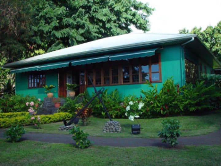 The James Norman Hall House is located in the suburbs of Papeete, It is a tribute to the American author who spent much of his life here after WW II. He is best known for his Bounty Trilogy co-written with Charles Nordhoff. The house is now a museum with over 3,000 books and personal items like the author’s typewriter and a model of the Bounty.