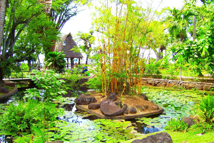 Bougainville Park is a lovely green oasis that stretches from Boulevard Pomare to Rue du General de Gaulle in Papeete.