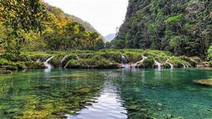 Located in a remote oasis in the middle of the jungle, Semic Champey will take hikers along a series of turquoise pools formed over a natural limestone bridge where the Cahabon River feeds the pools. It is possible to swim in the pools.