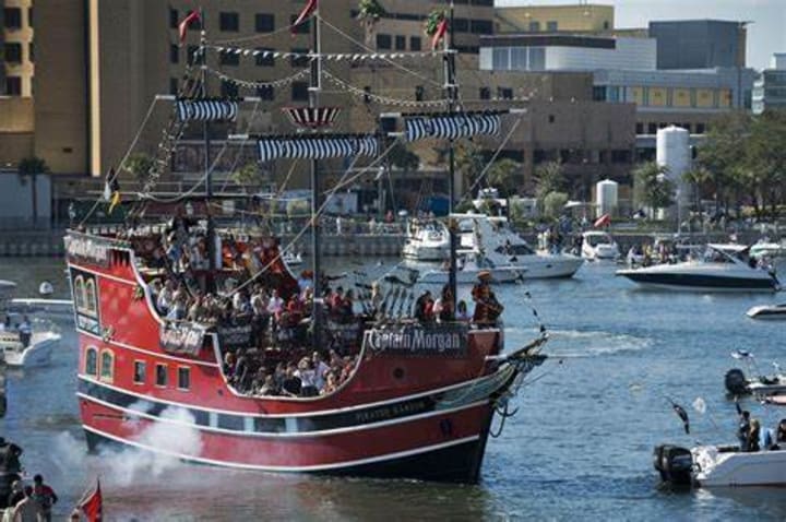 During the Gasparilla Pirate Festival, a parade of boats sails through the Tampa waterways, and eventually, the crews come ashore to take over the city. The parade attracts huge crowds.