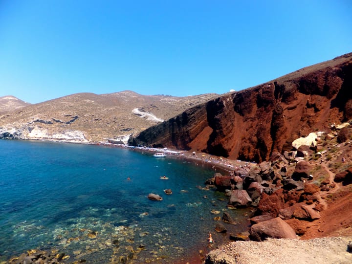 Santorini is a lovely island for swimming and sunbathing on black volcanic-sand beaches on the east and south coasts.