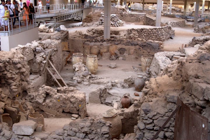 Tourists enjoy visiting the archeological site of Akrotiri. This is an ancient Minoan settlement buried below lava. The volcanic eruption that created the caldera occurred some 3,600 years ago. There is an airport on this island and is served by ferries and catamarans from the port of Piraeus in Athens.