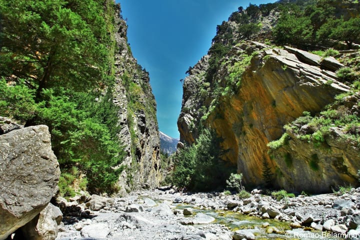 Samaria Gorge is a top attraction on the island of Crete. The gorge runs from Omalos in the White Mountains down to Afia Roumeli, on the Libyan Sea.