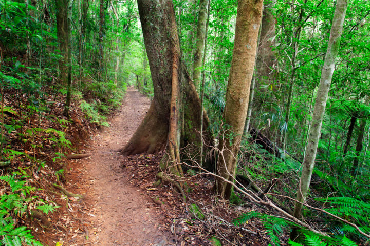 The Border Track stretches for 21.4 km between the Binna Burra and the Green Mountains in Lamington National Park. Have an adventure climbing through the Tweed Volcano’s highest remaining basalt lavas and watch as the rainforest changes altitude. Along the way moving from warm to cool subtropical rainforest you’ll see strangler figs, palms, ferns, hoop pines, and Tarzan-like vines. Higher up there are coachwood trees, ancient flowering plants, and southern beeches.