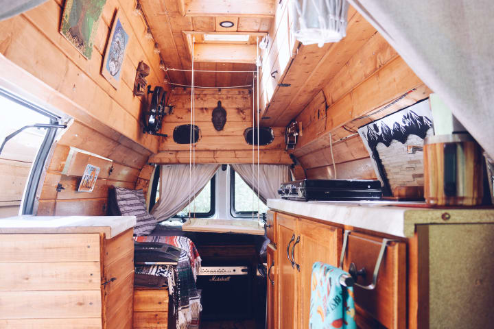 In the small town of Springville Utah, I was raised as well as my stubborn, rebelious, naive self allowed my parents to raise me. Not only did I make it out alive, I learned some quality common sense and put a head on my shoulders. Like most adolescence transitioning into adulthood, I had to suffer through twelve years of excruciating pain and psychological torture known as high school. While I value education and incourage the expansion of the mind, I spent most days feeling caged or trapped. Anxious about getting the highest grades and worried about getting stuck in a nine to five job, I developed a need for freedom, adventure, and inner peace. Although teenhood provided sneak peaks at the main game, the very real and unfathomable world I was about to be thrown into was just waiting for me to graduate. With the help of high school woodshop and the tools in my dads garage, I was able to convert a 2007 Chevrolet 15 passanger van into a small cabin on wheels. Miraculously passing my english class, I DROVE through my graduation cerimony hanging out the side of my new house.