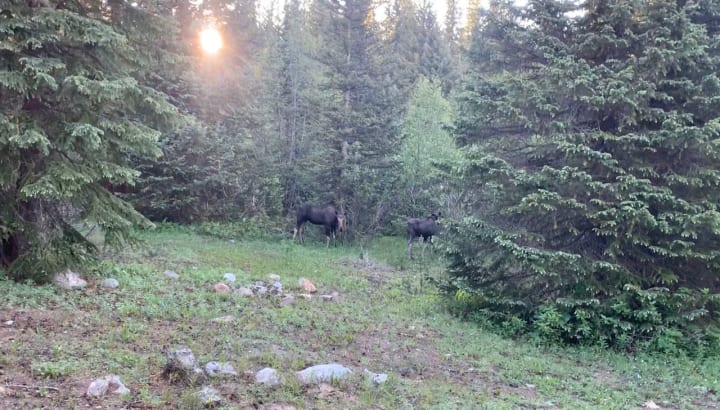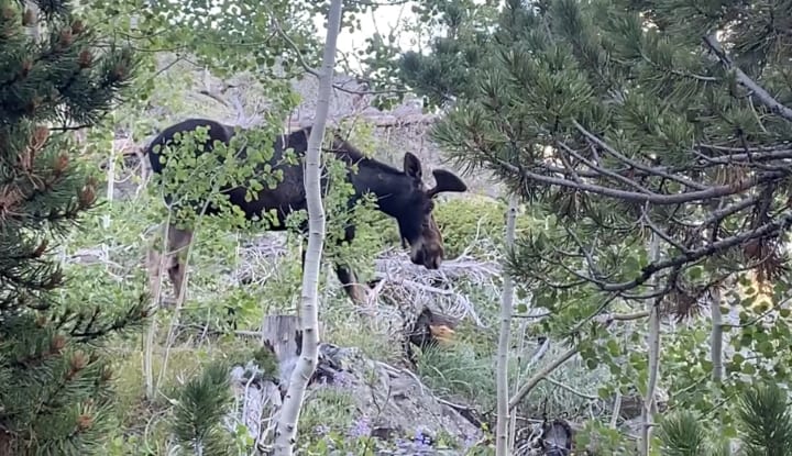 One of my favorite trips was to Kings Lake through the Middle Boulder zone of the wilderness. A seven mile hike to the continental divide that ended right above the beautiful Kings Lake and overlooked the valley I had just hikee through. Unfortunately I forgot to bring my camera and my phone died so I couldn't photograph how beautiful it really was. The wildlife was absolutly stunning, I saw a huge moose just a mile into the trip and about half a mile after that I spotted a mother and her calf eating in a little meadow.