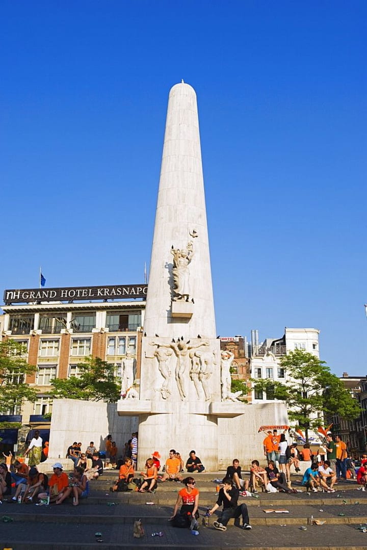 One of the main attractions is the Royal Palace. In the square is the National Memorial Statue that was built in memory of Dutch soldiers and members of resistance who lost their lives in WW II. It was unveiled in 1956 and stores soil from all of Holland’s provinces as well as the Dutch East Indies. On the back of the obelisk are crests of the provinces.