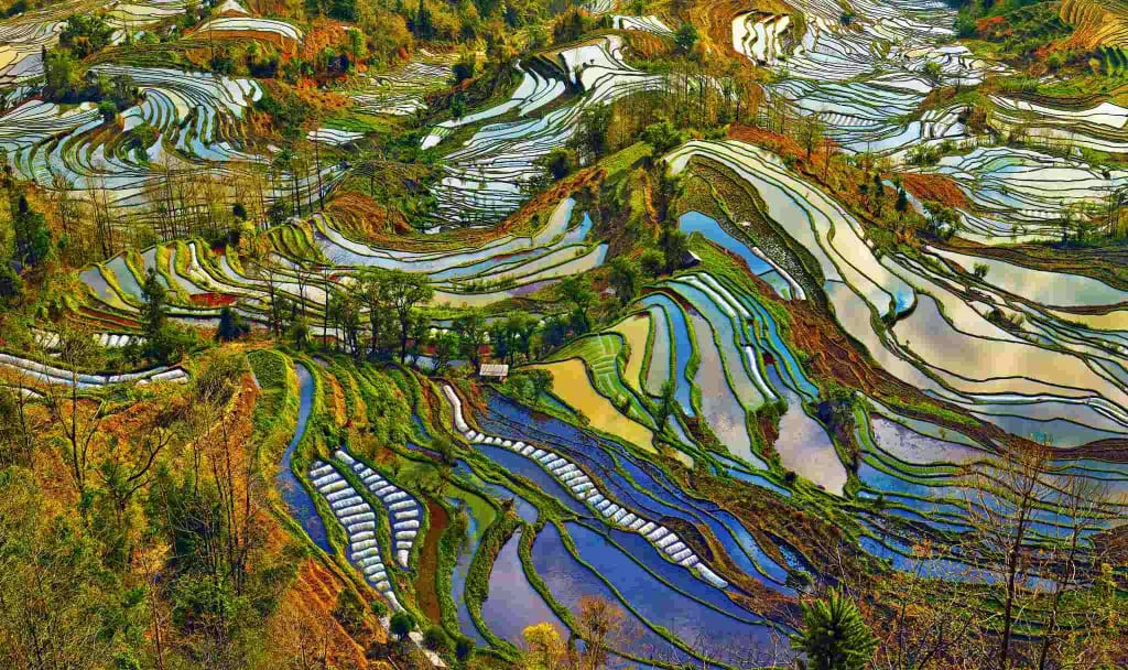 The Honghe Hani Rice Terraces is 16,603 hectares in Southern Yunnan. It has amazing terraces that slope down the Ailao Mountains to the Hong River. This area isn't an extremely popular tourist destination, but you can take amazing photos at these terraces. These terraces were formed over 1,300 years ago by the Hani people. This sight is so remarkable that it was added to the UNESCO world heritage list.
