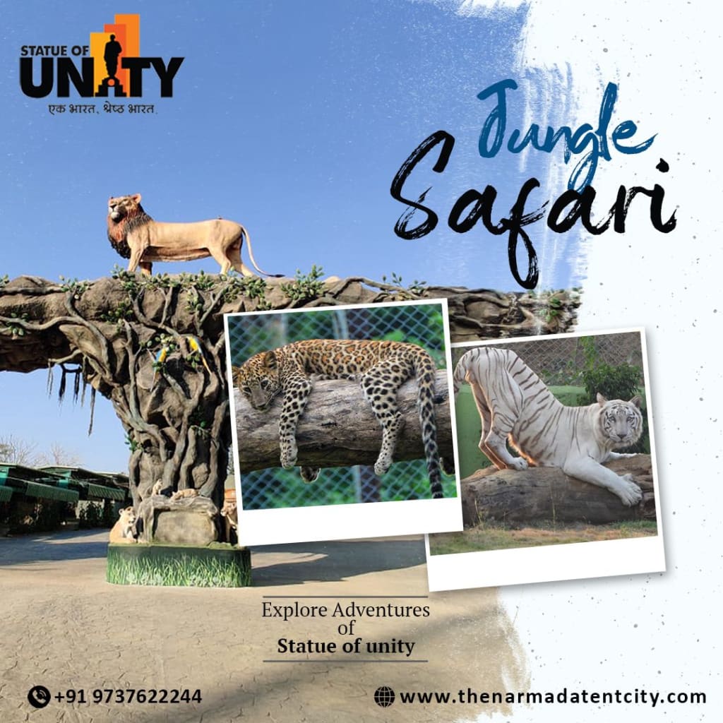 If you want to experience the mesmerizing view of picturesque wildlife, visit the jungle safari at Ekta Nagar. This geological park has various collections of exotic, unique, and indigenous birds and animals. It is located near the world's tallest statue, "The Statue of Unity” and the famous “Sardar Sarovar Dam," and covers 375 acres. It ranges through the elevation or altitude of 29- 180 meters at seven different levels On the Narmada River's right bank.