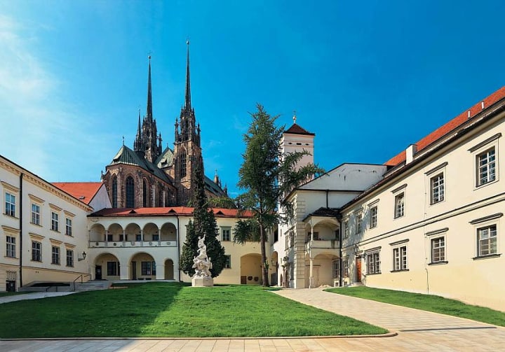 The Cathedral of St. Peter and Paul sits atop Petrov Hill. It is considered to be one of the most important Czech cultural monuments. The highlights are the impressive Baroque interior and on the outside the 84-meter-tall twin towers added at the start of the 20th century. You can see the remnants of the original city walls buried beneath the cathedral. Regular daily mass is held here.