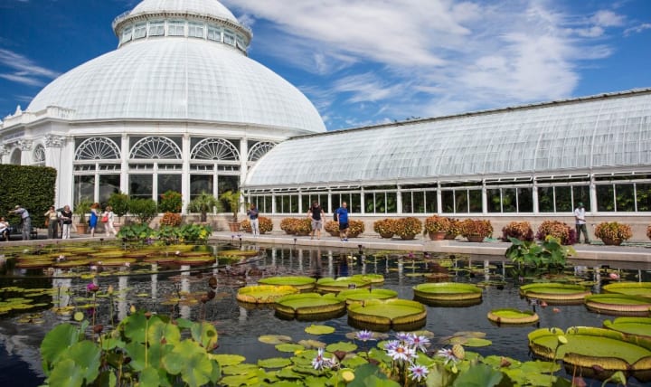 New York Botanical Garden in The Bronx, New York is a National Historic Landmark that was established in 1891. It is a lovely garden close to an old-growth forest and near the Bronx River. There are 50 specialty gardens with over a million plants and 12,000 species among them lilacs and magnolias. Among the highlights is the Victorian-style greenhouse conservatory with northeastern North American native plants and one of the world's most sustainable rose gardens.