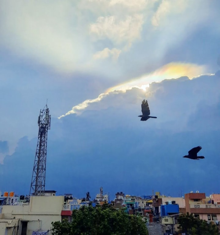 I thought I was missing out on a lot during the pandemic and as true as that was, I was closer to home than ever. When my anxiety peaked, I watched the clouds take immaculate forms, and reveled in the splendor of the sun. I only had to look up to see the sky mimic how I felt - like my worlds were colliding.
