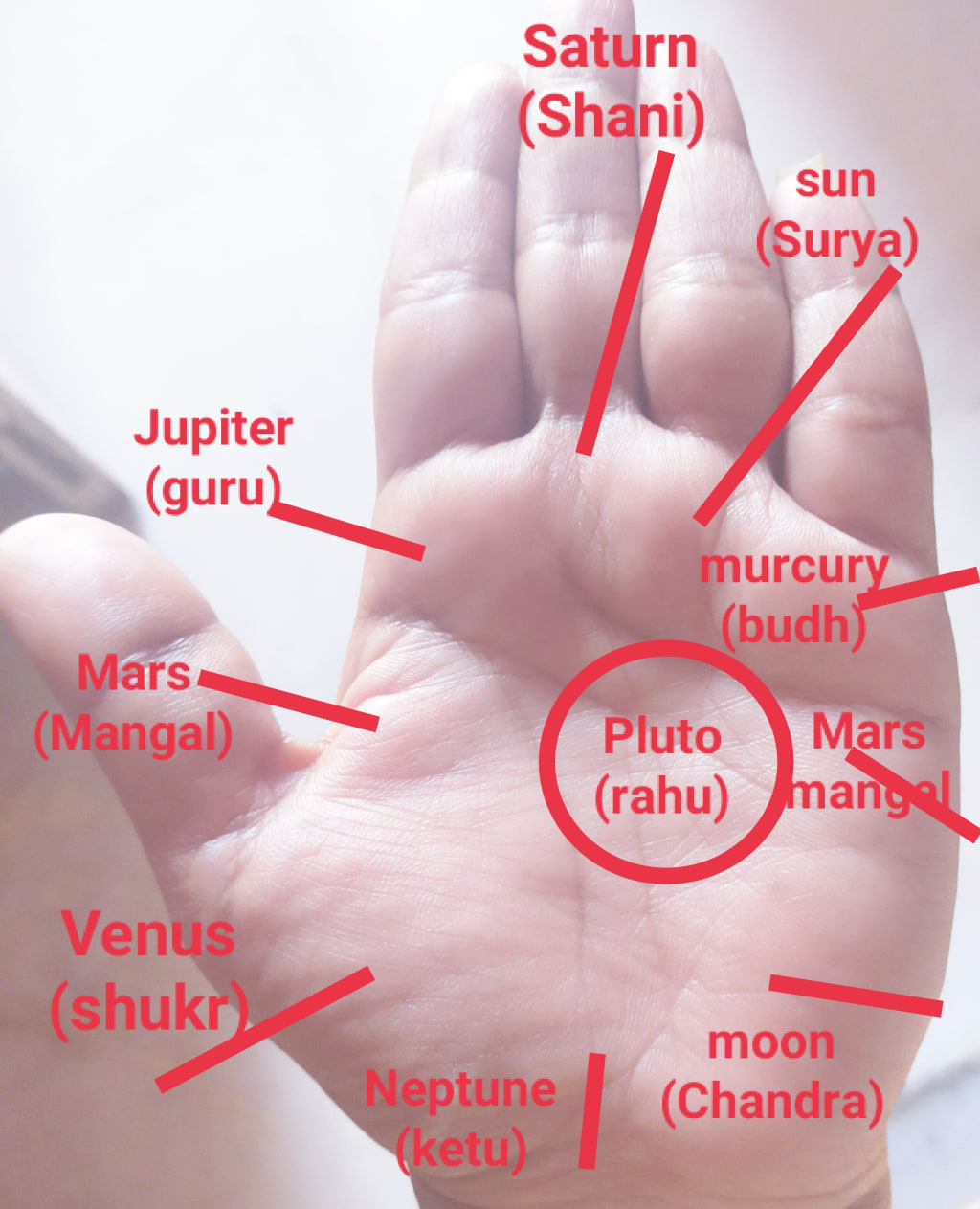 According to palmistry, there are a total of 10 mountains in the hand, according to western belief, some astrologers also consider 12 mountains in the palm, in English these mountains are called mounts.