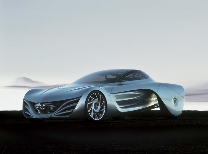 The Mazda Taiki was first presented in 2007 during a Japanese auto show. It looks a little funky, has virtually no trunk, and also has rear wheels that make you wonder how on earth it's supposed to turn.