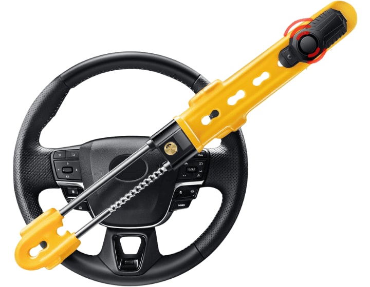 - Steering Wheel Locks: Slide the lock over the wheel and turn the key.
