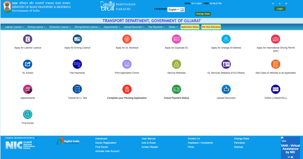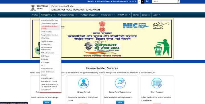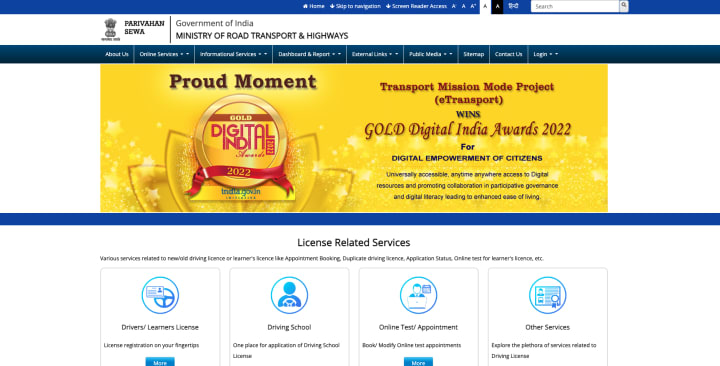 - Visit the Parivahan website (The official site for driving license applications in India).