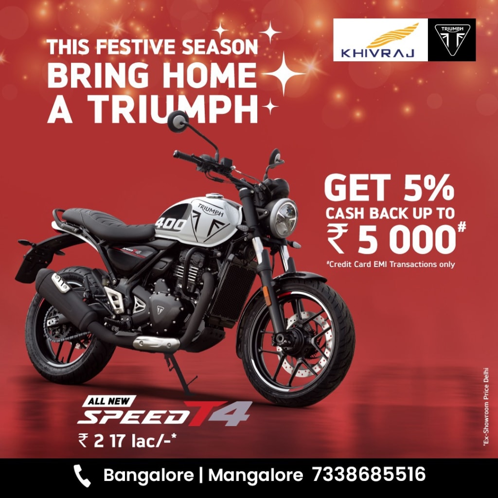 Expert Staff: The people at Khivraj have a love for motorcycles and are professionally equipped to comprehend the workings of Triumph Speed T4. They will help customers to make the right choice of what model to buy and how it should be configured.