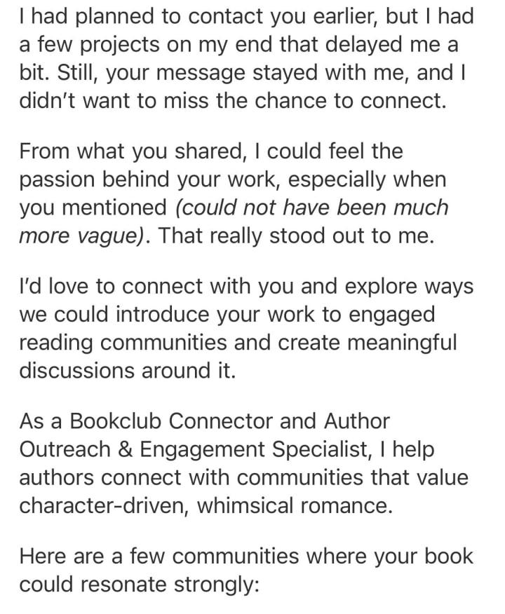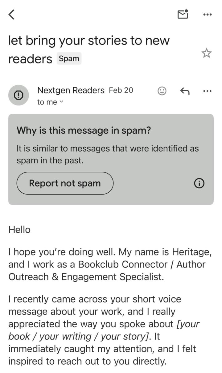 I've recently come into contact with this new member on Vocal-Media. They approached me via comments on a poem I had posted. I was almost dumb enough to fall for it too.