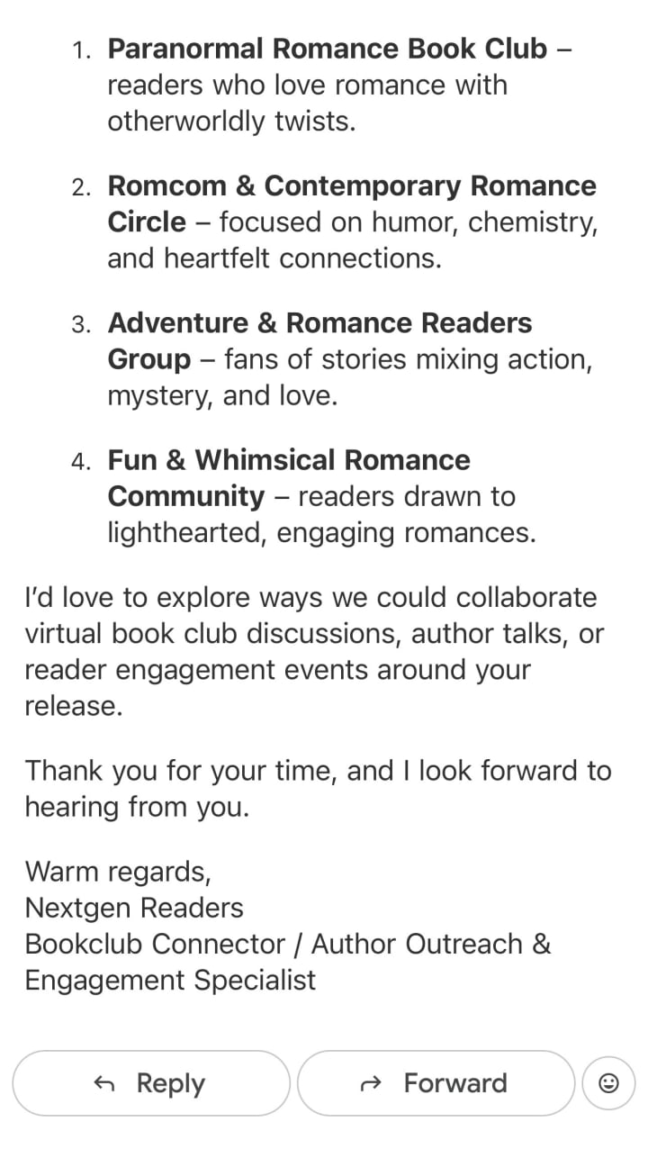 While corresponding I also did a quick search to try and learn more. I was overjoyed and found a company with a similar name and thought this must be legit. They requested my gmail and I gave it to them. (I've since removed my gmail from these comments) Below is the email they sent me and it was immediately apparent that it was AI generated. I could not even find the address this came from. Still overjoyed it took several searches for me to come to the realization that this is bogus. :(