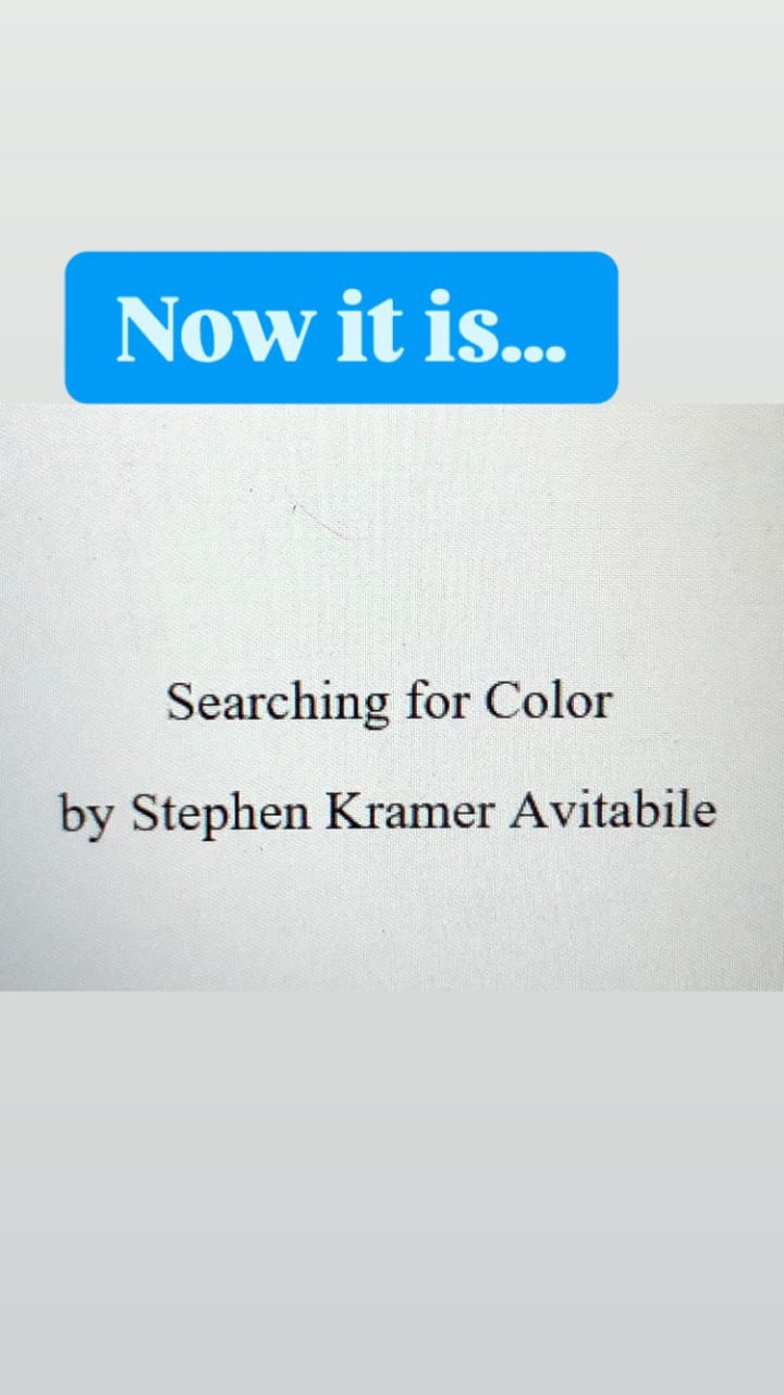 First off, I realized the title was almost there. But not quite. I changed that to "Searching For Color." Sounds better to me.