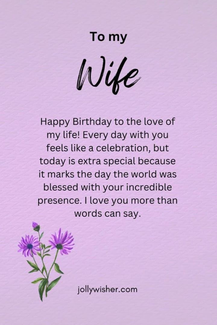There’s no formula for the perfect birthday wish, but sincerity never goes out of style. Whether you write a poem, send a text, or shout your love from the digital rooftops, make sure your message is real. Speak from the heart, and let your wife know that her presence in your life is the greatest gift of all.
