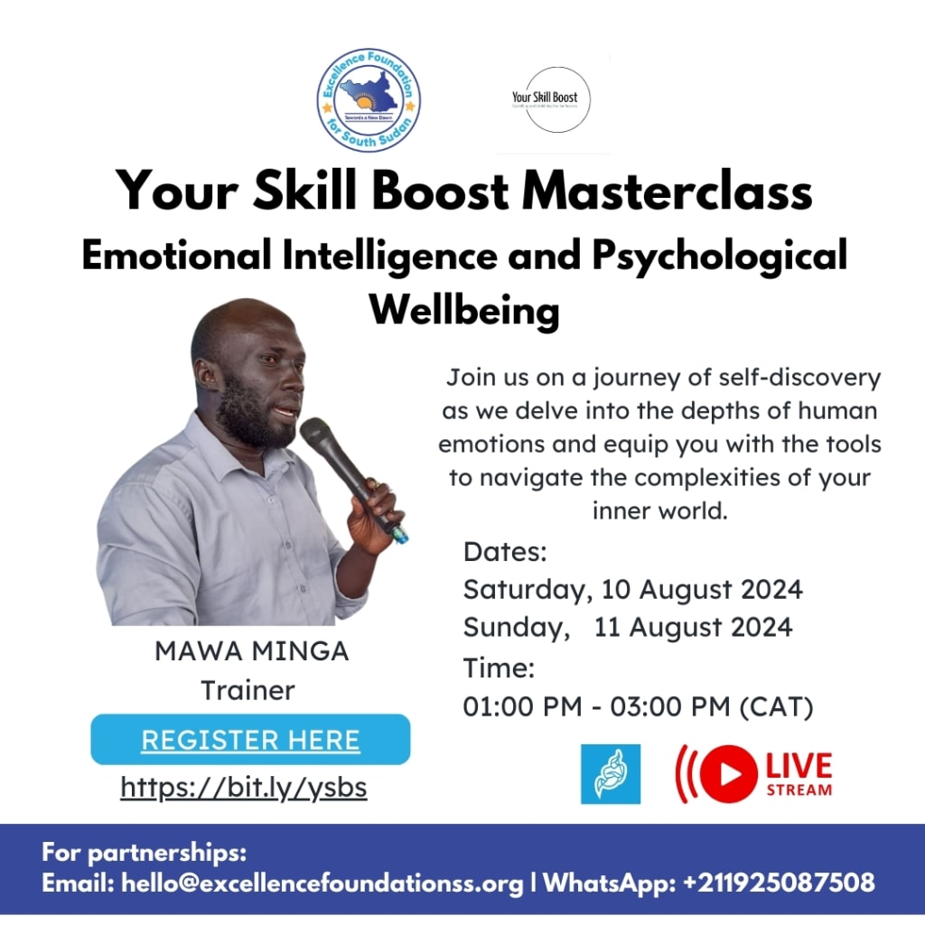 This past weekend, we hosted an insightful masterclass on Emotional Intelligence and Psychological Well-being via Zoom livestreamed on YouTube as part of our Your Skill Boost project. The event, held on Saturday 10th, August, and Sunday 11th, August attracted over 20 individuals from different backgrounds eager to deepen their understanding of these vital topics.
