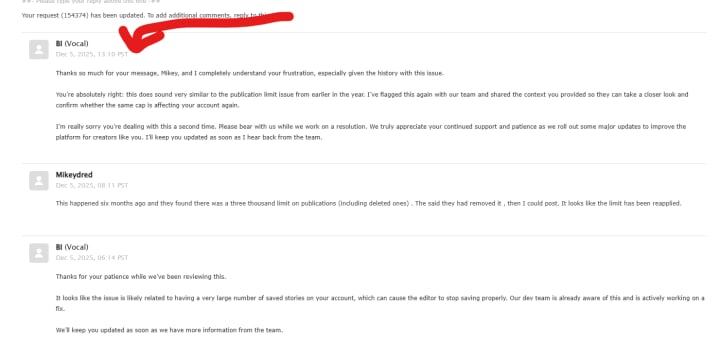 Apparently, everything is hunky dory on the Vocal site. I checked my ticket today and got this.