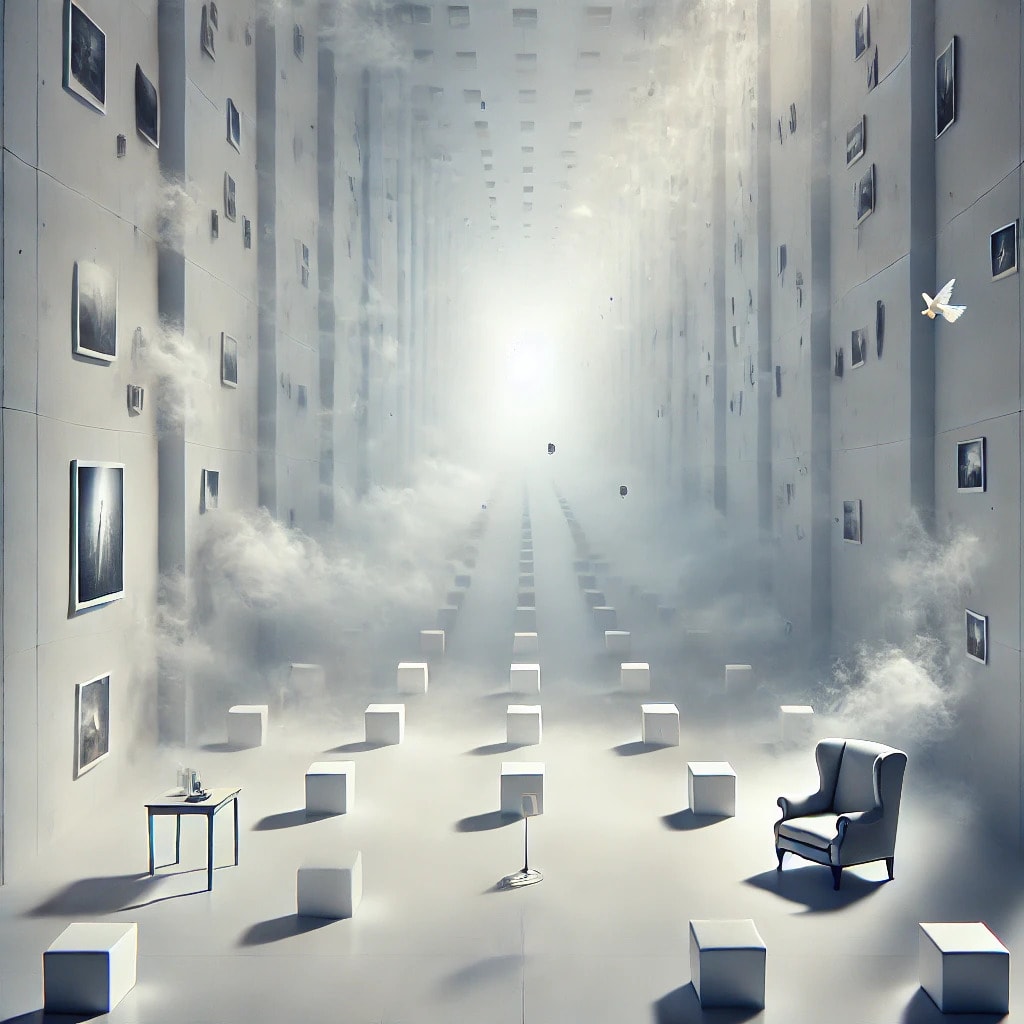 It is an infinite hall with no furniture, no echoes, only walls stretching beyond sight. People carry it with them like an empty suitcase, filled only with heavy air, often unaware they are carrying it. They feel its weight in the pauses between words, in the hollow after laughter fades, in the quiet moments before sleep claims them. It is there, persistent and unyielding.